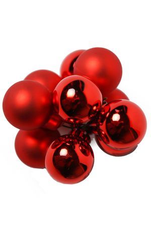 Характеристики: В наборе: 12 шаров, каждый на проволоке. Диаметр шарика: 2 см. Материал - стекло. Цвет: красный