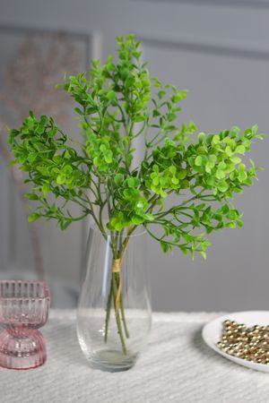 Характеристики: Общий размер ветки: 36 см, из них стебель 29 см. Материал - текстиль, блёстки. Цвет - светло-зелёный.