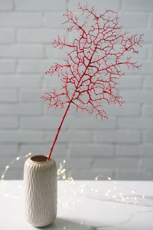 Эта чудесная ветка напоминает изысканный, хрупкий, сказочный коралл, мерцающий волшебством! Она станет великолепным элементом праздничной композиции, а особенно эффектно, и даже фантастично, будет смотреться с цветами!