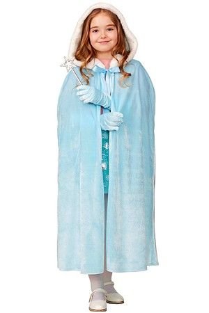 Замечательный, придающий таинственности голубой плащ из уютного велюра для Принцессы, которая на самом деле самая настоящая фея - мало того, что в этом плаще она очаровательно выглядит, так он ещё и позволяет спрятать волшебную палочку от ненужных взглядов, ведь волшебство не любит праздных зрителей и суеты!