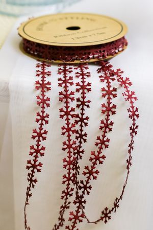 Идеальное праздничное сочетание - торжественный белый и яркий алый, чудесный новогодний мотив - искрящиеся снежинки. Красивое и элегантное дополнение любого декора: упаковка подарка и букета цветов, оформление ёлки и домашнего убранства.