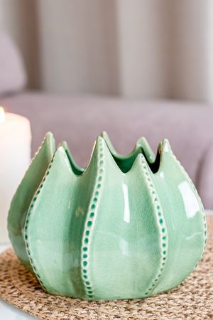 Кому-то две небольшие керамические вазочки 'Боссен' напомнят интерьерные предметы, бывшие популярными в 70-е годы ХХ века, а кто-то увидит в них что-то общее с гофрированными китайскими фонариками. Совсем небольшие, но невероятно стильные, они добавят в ваш интерьер тёплые, насыщенные 'лесные' оттенки и особое, умиротворяющее очарование! Ручная работа
