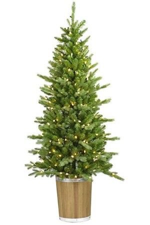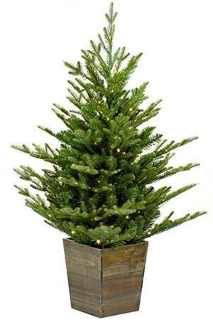 Характеристики: Высота - 91 см. Диаметр нижнего яруса - 76 см. Количество веточек - 668. Хвоя - литьё (PE)+PVC. Цвет - зелёный. Вплетённая электрогирлянда - 100 тёплых белых LED-огней. Подставка - деревянное кашпо.