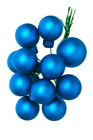 Характеристики: В наборе: 12 шаров, каждый на проволоке. Диаметр шарика: 2.5 см. Материал: стекло. Фактура: матовая. Цвет: синий бархат. Тип крепления: проволока.