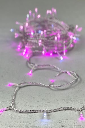 Характеристики: Количество LED-ламп: 100; Цвет лампочек: розовый Гирлянда - мерцающая, каждый 5-й диод мерцает холодным белым Мощность: 4,9 Вт; Напряжение: 24V; Длина провода: 10 м; Гирлянда имеет коннектор, позволяющий соединять до 10 электрогирлянд; Провод: прозрачный PVC; Степень влагозащиты: IP44 (подходит для использования в помещении и на улице в местах, защищенных от прямого воздействия струй воды, например, под козырьками и навесами)в в условиях высокой влажности;