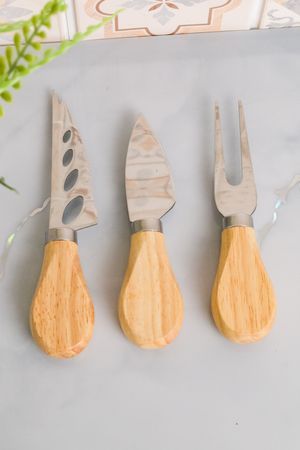 Если вы давно и нежно любите сыры, то скорее всего у вас уже есть аксессуары для их правильной и удобной сервировки. Но если вы только начинаете свой путь в этот изысканный и очень вкусный мир, то вам непременно понадобится набор специальных ножей: ножом-вилкой удобно придерживать сыр при нарезке, нож-кинжал предназначен для откалывания кусочков сыров твёрдых сортов, а ножами-лопаточками очень удобно отрезать и подхватывать кусочки полутвёрдых и мягких сыров. Попробуйте, и вы в этом убедитесь!