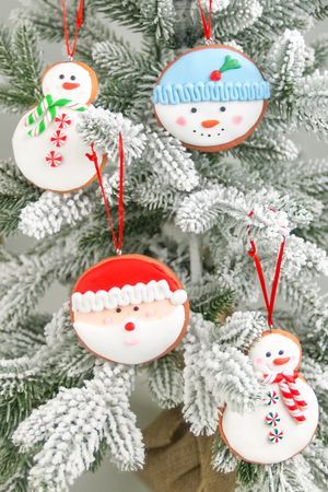 | Эти Санта и Снеговичок такие сладкоежки, что просто перепутали настоящий искристый снежок и посыпались кристалликами сахара! А если учесть, что и сами они из разноцветной сладкой глазури, и в ручках у них карамельки, то у вашей ёлочки будет самый 'вкусный' декор, а у вас самое сладкое настроение!