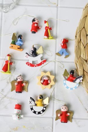 Характеристики: В наборе: 24 шт. Размер: 2-4 см. Материал: дерево. Цвет: разноцветный. Тип крепления: подвеска.