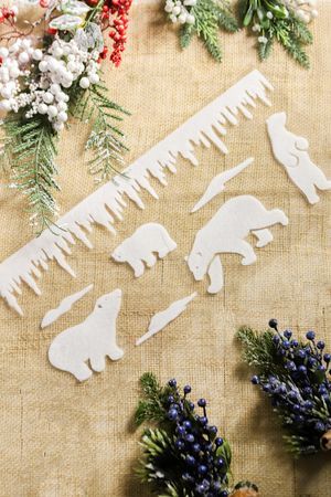 Эти белоснежные сосульки из толстого слоя полиэстера не растают и никому не упадут на голову - можно спокойно использовать их как изумительное дополнение новогоднего дизайна. Сочетаются с любыми украшениями, оригинальнее всего смотрятся на темном фоне.