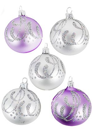 Характеристики: В наборе: 5 шт. Диаметр: 6.2 см. Материал: стекло. Цвет: фиолетовый. Шары со снежинками могут быть глянцевыми или матовыми, выбор не предусмотрен. Упаковка: подарочная картонная коробка.