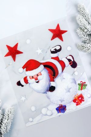 Чтобы ощущение праздника было полным и радостное настроение не покидало ни на миг, окружите себя настоящей зимней сказкой! Пусть покачиваются на ёлочке разноцветные шары, поблёскивает мишура, мерцают огоньки гирлянд и пусть даже в окошке искрится снежок, подмигивают волшебные звёзды и от души, как в детстве, веселится Санта, катаясь на снежном шаре! Наклейку можно разместить не только на окне, но и на зеркале или другой гладкой поверхности.