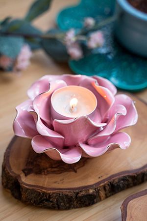 Словно волшебный огненный цветок из сказки, этот приоткрывшийся розовый царственный лотос озаряется изнутри пляшущим пламенем свечи и отбрасывает вокруг причудливые тени! Этот маленький керамический подсвечник станет изысканно романтичной ноткой в декоре!