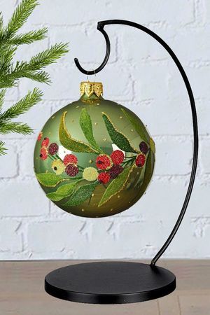 Очень изящная, стильная и практичная подставка поможет вам отдельно насладиться красотой и оригинальностью любимого дизайнерского шара или подвесного украшения. Такая соло-композиция может стать очень красивым элементом сервировки праздничного стола, украшением рабочего стола или столика в спальне.