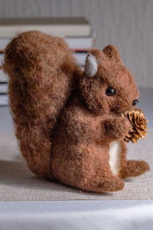 Очаровательный коричневый бельчонок будто только что выбежал из леса и уселся на виду, чтобы мы могли полюбоваться его шерстяной шубкой, пушистым хвостиком и посмотреть, как он будет добывать любимое лакомство - семена сосновой шишки. Мягкий и тёплый, выполненный из валяной шерсти, под праздничной ёлочкой он станет настоящим персонажем сказки 'О царе Салтане'!