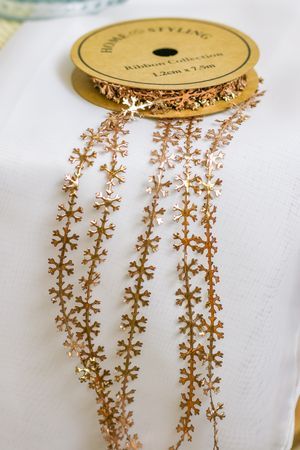 Торжественность бронзы и традиционный рождественско-новогодний мотив - снежинки, а вместе - идеальное праздничное сочетание в виде прекрасной декоративной ленты 'Арболь', которая красиво и элегантно дополнит любой декор. Лентой 'Арболь' вы можете оформить подарок и украсить ёлочку, использовать в букете цветов или в домашнем интерьере.