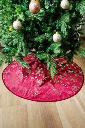 Как самый красивый вечерний наряд не будет завершённым без подходящей пары обуви, так и праздничное убранство вашей ёлочки не будет полным без специальной юбочки, укрывающей от посторонних взглядов укреплённую крестовину или ведёрко, в которое она установлена. Юбка с отделкой в традиционную красно-зелёно-чёрную клетку идеально подойдёт к любым украшениям, а улыбчивый Санта среди снежинок обязательно вызовет ответные улыбки у всех, кто с ним познакомится.