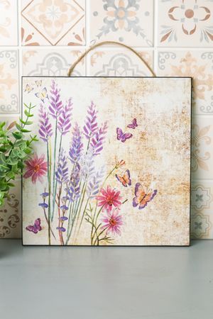 «Из Прованса с любовью!», - именно такая ассоциация всплывает в голове при взгляде на это необыкновенное, очень атмосферное панно, чуть напоминающее винтажную открытку! А как прекрасен ирис, изображенный на нем! Он, одновременно, роскошный и нежный, пышный и хрупкий – смотришь на него, и словно чувствуешь легкое, теплое дыхание весны! Великолепный элемент для декора в стиле Прованс!