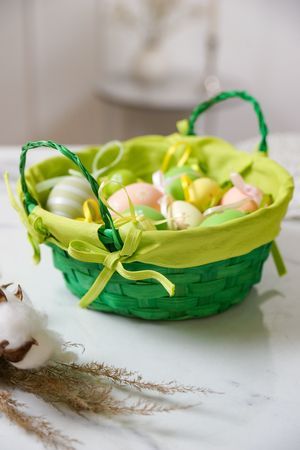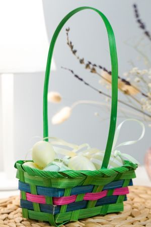 Как здорово, что в наше время нет необходимости изобретать что-то, изготавливая ёмкость для пасхальных 'крашенок', а можно просто на свой вкус выбрать красивую, жизнерадостную корзинку! В коллекции 'Яркая Пасха' вы найдёте корзины чудесных ярких цветов: например, вот такую, весенне-зелёную, украшенную тематическими рисунками. Корзинка очень украсит пасхальный стол, а может стать красивым обрамлением для ваших праздничных подарков.