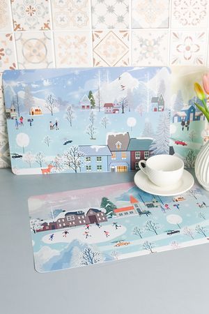 Разноцветные тематические подложки - очень удобное и практичное средство индивидуальной сервировки: любые загрязнения легко удаляются с них влажной тряпочкой, поверхность стола отлично защищена от тепла и влаги, но главное - это атмосфера, общий ритм, который задают чудесные рисунки, где все оттенки зимы замечательно вплетаются в праздничный настрой!