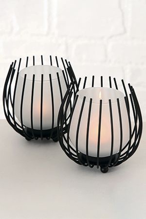 Характеристики: Размер - 16х9х9 см. Материал - металл. Цвет - чёрный. В ассортименте 2 модели. Выбор не предусмотрен. Свечи в комплект не входят.