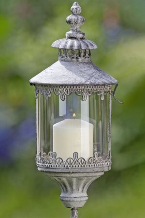 Изящный садовый фонарь-подсвечник с элементами металлического кружева станет настоящим украшением вашего сада или террасы! Выполненный из прочных материалов, этот садовый фонарь прекрасно защищен от непогоды, при этом его воздушный ажурный дизайн создаст ощущение легкости и изящества. Этот стройный фонарь идеально подойдет для освещения дорожек и зон отдыха. Зажгите внутри свечу и создайте изысканно-романтическую атмосферу, привнеся нотку винтажного шарма в дизайн вашего сада.