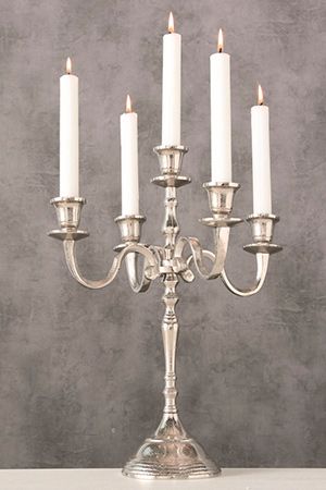 Даже, если вы последовательный поклонник современных интерьеров, великолепный канделябр на пять свечей не будет лишним в вашем доме! Крупный, необычайно изящный, стильный - он украсит каминную полку или консоль и, конечно, легко создаст чудесную атмосферу, если вы решите пригласить друзей на ужин или, напротив, посидеть с книгой в уютной тишине.