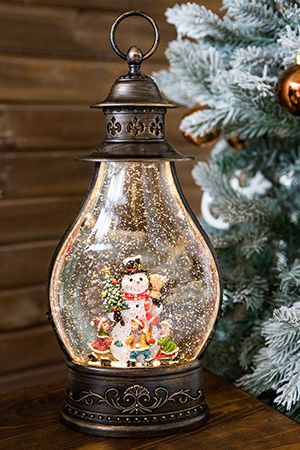 Характеристики: Размер - 10.5х28 см. Высота с ручкой - 31 см. Материал - полистоун, пластик. Тёплые белые LED-огни. Эффект метели из блёсток. Работает от 3хАА батареек (в комплект не входят).