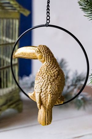 Шикарная экзотическая птица, даже точнее - экзотический птиц - тукан гордо восседает в своём стильном кольце, не обращая внимания на мирскую суету. А как иначе? Не зря же он выкрасился в цвет благородного золота!