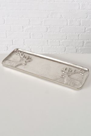 Великолепный металлический поднос с изображениями серебристых оленей с ветвистыми рогами перенесет вас в атмосферу новогодней сказки! Поднос идеально впишется в праздничную сервировку и станет её главным украшением. На нём прекрасно будут смотреться как пирожные и фрукты, так и свечи или вазочки!