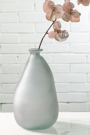 Если вам нравятся оригинальные, стильные, заметные в интерьере дизайнерские предметы, то дымчато-серая стеклянная ваза-бутыль, несомненно, заслуживает вашего внимания! Сочетание матовой поверхности, глубокого цвета и интересной формы будет великолепно смотреться с декоративной веткой или цветком. Особенно эффектно ваза будет смотреться на фоне однотонной поверхности - это подчеркнёт её благородный оттенок и необычный силуэт.