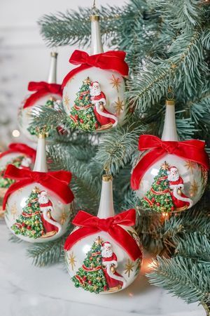 Если представить себе, что можно поймать в ладони комочек морозного новогоднего вихря, вылепить из него шарик, как из снега, а затем обвить праздничной алой лентой, то в результате, пожалуй, и получится тонкое и звонкое украшение из представленного набора. Необыкновенно изящные, словно наполненные зимней свежестью и предпраздничной кутерьмой, эти шары принесут с собой ту неповторимую новогоднюю атмосферу, которую с таким нетерпением ждут в каждом доме!
