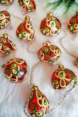 Ханский дворец Бахчисарая - прекрасный образец османского искусства, включающего самобытную архитектуру, цветные мозаики, ковроткачество и многое другое. Великолепные красно-вишнёвые орнаменты, украшающие ярко-золотой фон этих потрясающе-красивых шаров, перенесут в роскошную атмосферу ханских покоев, напомнив об удивительных узорах мягких персидских ковров...