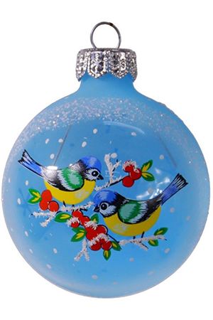 Стеклянный елочный шар с ручной росписью. Диаметр шара - 60 мм Цвет фона шара - голубой Материал: стекло.