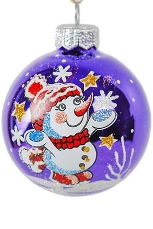 Стеклянный елочный шар с ручной росписью. Диаметр шара - 60 мм Цвет шара - фиолетовый Материал: стекло.