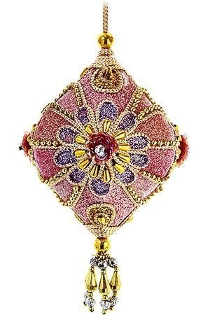 Розово-лавандовый блеск, золотые бусы, манящие подвески, затейливые цветы - такое роскошное украшение-луковку можно было бы увидеть в гостях у сказочной Шахерезады. Пусть и ваш праздник будет таким же прекрасным и интересным, как великолепные повествования восточной красавицы!