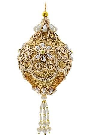 Жемчужно-золотая луковка, украшенная затейливым витым узором, - настоящий символ торжества праздничной роскоши! Великолепие формы и орнамента, благородного блеска и фантазийного узора по-настоящему раскроются на фоне пушистых зелёных ветвей новогоднего деревца.