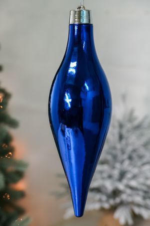 Большой синий глянцевый шар из пластика идеально подходит для оформления искусственных и натуральных елей и на улице, и в помещениях.