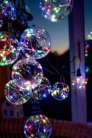 Стильная, чуть забавная гирлянда из лампочек-шариков, в каждом их которых светятся крошечные разноцветные огоньки-светлячки, станет чудесной, замечательно обаятельной изюминкой дома или сада, создающей исключительно добрую и душевную атмосферу!