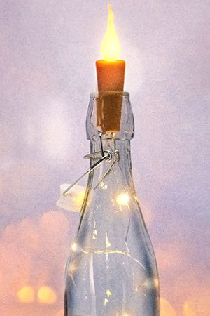 Бутылки с заманчивыми огоньками-светлячками внутри очень стильно смотрятся в интерьере и, благодаря этой особенной гирлянде, вы сможете сами сделать такие оригинальные светильники, ведь батарейки в ней располагаются не в обычном коробе, а в удобной пробке в форме свечки!