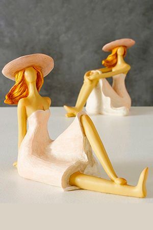 Декоративная фигурка РОМАНТИЧНАЯ КУРОРТНИЦА, сидящая и опирающаяся на руки, глядя на которую вы, наверняка, почувствуете лёгкое дуновение бриза и унесётесь мечтами туда, где тихо шепчет тёплая морская волна, светит солнце и всё окутано нежным флёром романтики! Эта юная леди в чудесном летнем платьице и стильной шляпке всегда с радостью поделится с вами именно таким своим настроением!