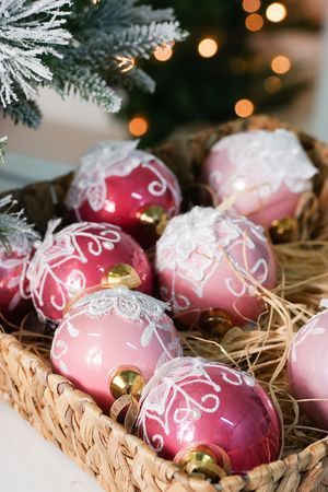 Украшенные дивными, словно созданными волшебницей-кружевницей, цветами шары романтичных оттенков станут самым роскошным, удивительным, очаровательным, экстравагантным и утончённым украшением в вашем новогоднем убранстве!