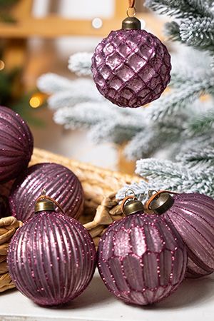 Характеристики: Диаметр - 8 см. Материал - стекло. Цвет - розовый бархат. В наборе - 6 шаров. Цена указана за набор.