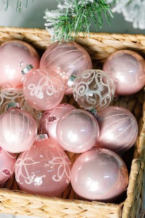 Стеклянные шары оттенка розового конфетти - идеальная база для украшения елки в любом стиле. Они могут стать и самостоятельным украшением, если их оформить ленточками или специальными бантами.