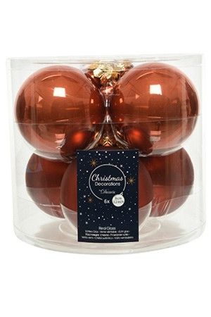 Характеристики: В наборе: 6 шаров - 3 матовых и 3 глянцевых. Размер шара: 8 см. Цвет: оранжевый шелк. Материал: стекло. Упаковка: пластиковая коробка.