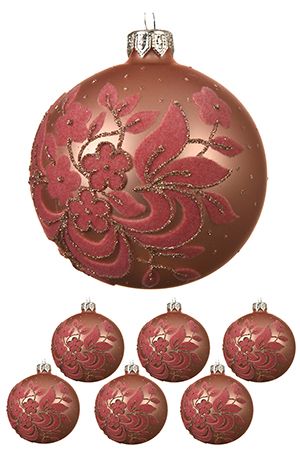 Характеристики: Диаметр - 8 см. Материал - стекло. Цвет - розовый бархат. В наборе - 6 шаров. Цена указана за набор.