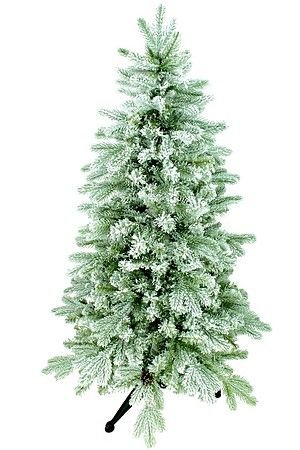 Характеристики: Высота ели: 240 см. Диаметр нижнего яруса: 115 см. Общее количество веток: 1207 шт. Тип хвои: литая хвоя (PE) - внешние веточки, ПВХ (PVC) - приствольное пространство. Литые иголки выглядят абсолютно натурально, и с расстояния в три шага ель смотрится как живая елка. Цвет хвои: зеленый. Декор: искусственный снег, шишки. Тип крепления веток: на шарнирах. Тип подставки: металлическая.