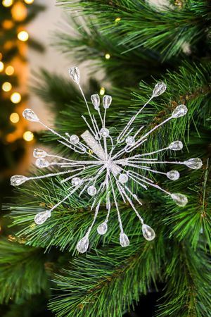 Вначале может показаться, что на белоснежных морозных лучах застыли искрящимися льдинками капельки сказочной росы… Удивительно изящный, будто неземной цветок будет невероятно красиво смотреться и на ёлочке, и в причёске, и на платье, и в интерьере - просто дайте волю вашей фантазии!