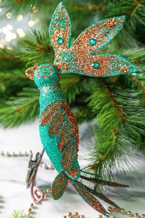 Крохотные птички колибри обитают в чудесных дальних краях и не каждому посчастливилось увидеть их в природе. Зато каждый может насладиться красотой и изяществом этих удивительных созданий, поселив дома, например, эту сверкающую зелёненькую Колибри! Тысячи блестящих искр рассыпятся вокруг неё изумрудным сиянием - стоит лишь поселить эту птичку среди пушистой хвои вашего праздничного деревца!