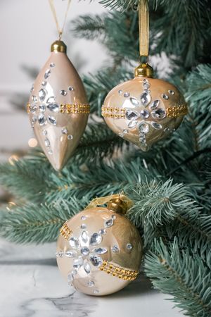 Лаконичные золотые украшения-подвески, так напоминающие формой капли, кажутся простыми, но, дополнив ими ёлочное убранство - вы удивитесь и восхититесь, увидев каким оно становится изысканным и элегантным!